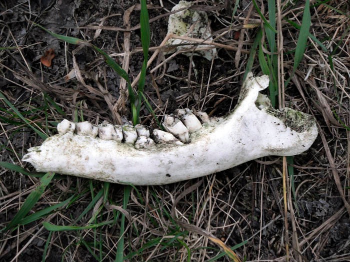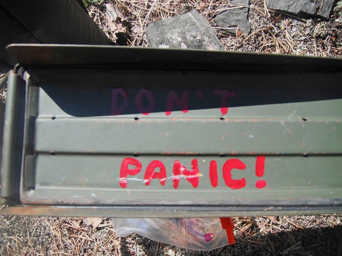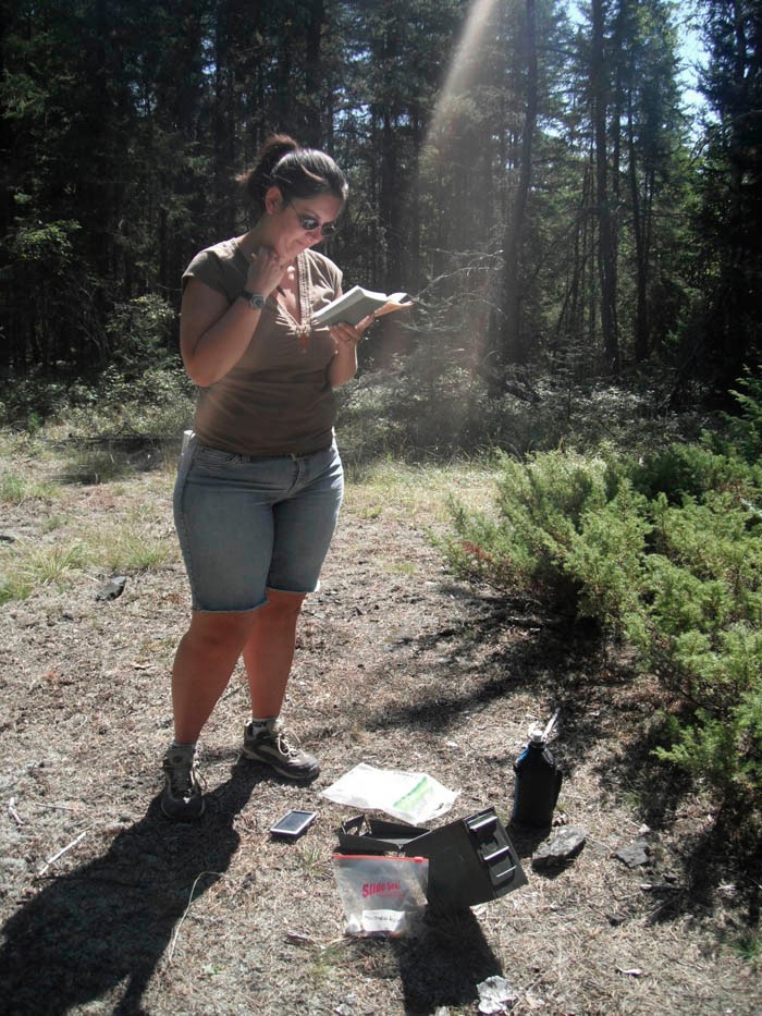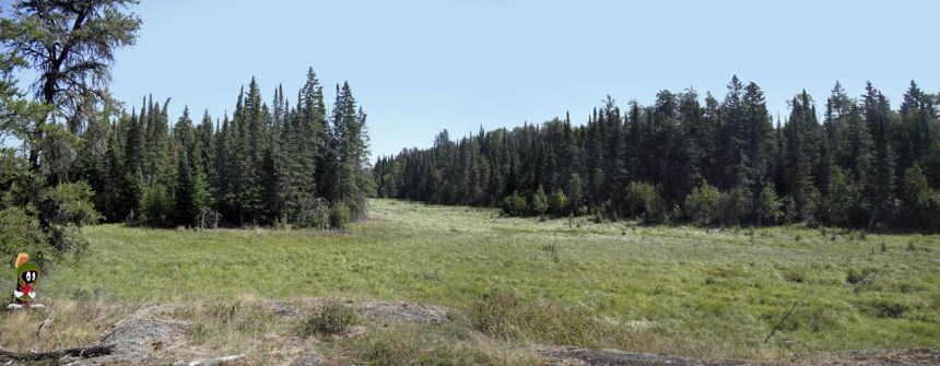 Anyways, the first one we went looking for was located near the place where the prospector, a Mr. Stefan Michalak, walked back out of the bush once he encountered the mystery craft. And with a name like Holy Zarquon Singing Fish, my wife couldn’t be happier to go find it! We’re both big fans of Douglas Adams, and it seems at least on other geocacher is as well. It was a nice little hike, but eventually I started to get a little worried. We we getting a bit off the beaten path, and we started to see signs that the site was recently inhabited. Though by beings of a more Earthly nature. Probably some wolves. Or maybe a black bear.