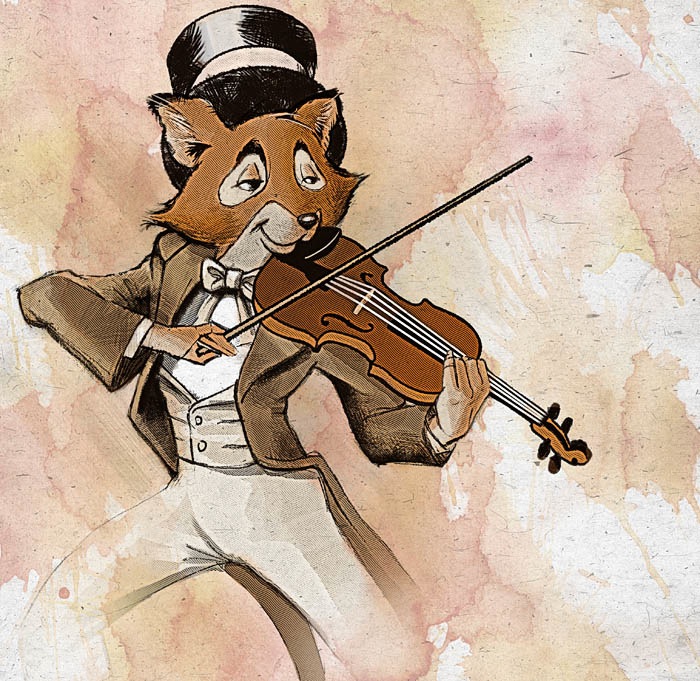 Remember this guy? I managed to get a more detailed render completed, and then coloured the guy in Photoshop. The background is some old watercolour texture I had lying around from who-knows-where. I wanted an old-timey feel to the illustration so a lot of muted tones.