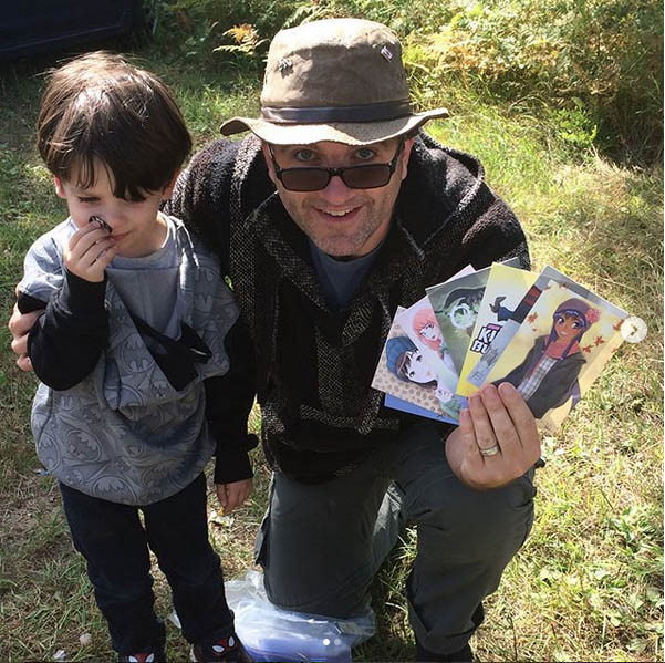 Here I am with my son Aiden, who is playing with a sticker found in the cache and has his hoody on backwards *SIGH*