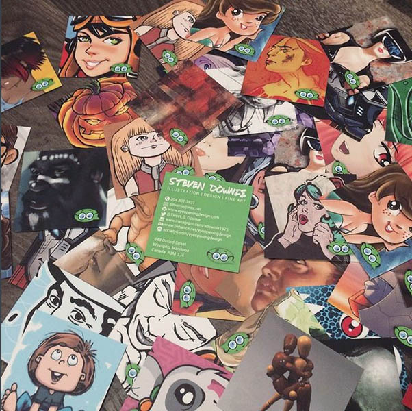 I went with a square size to better show of a sample illustration on one side, and would accommodate my growing list of social media platforms. With Moo.com’s “Printfinity” option I could do a different illustration for the back of each card. Was a cool branding exercise. Even though it did generate a LOT of files! There are 43 different backs. Each one needed to be specially cropped and sized to fit the square frame.