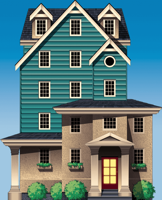 While not any house I ever lived in, this was a quick illustration I did years ago. This was a vector drawing with some Photoshop ebnhancements. Was never used. Enjoy!
