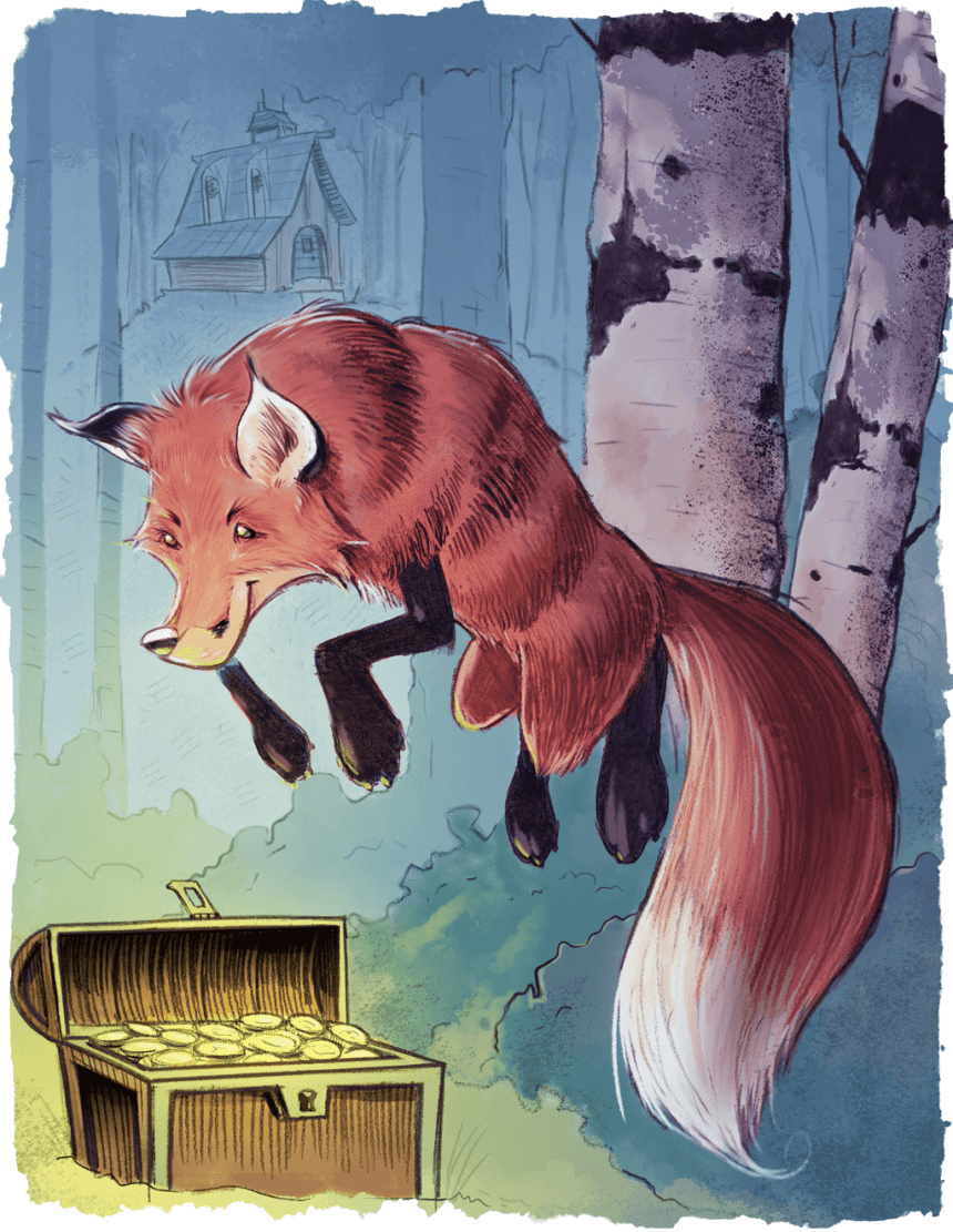 This fun drawing of a fox pouncing on hidden treasure started off as a traditional pencil sketch that got worked over quite a bit in Photoshop. Enjoy!