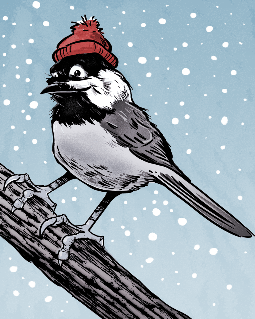 Fun cartoon drawing depicting everyone’s favourite Canadain winter bird (besides snow owls that is!). There’s been quite a few of them in my backyard lately. Enjoy!