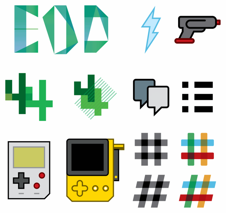 The final piece at the top shows some cleaned up final images. Some things there will be pretty recognizable. I think I’m the only person of my generation that never had a Gameboy, though I did spend a summer hanging out with a cousin of mine who had one. He let me play Kirby and Castlevania on it. I thought the Playdate hand-held announced this year was pretty cool as well. EOD is short for Eye Opening Design (this blog), and 44 is my current age. Enjoy!